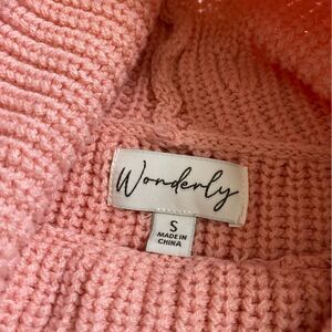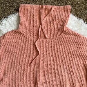 Wonderly Knit Tunic Sweater Side Slits Pink Oversized Slouchy Funnel Neck Small