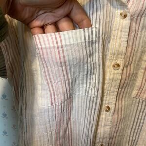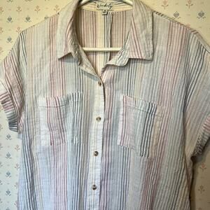 Wonderly Medium Multi-Color Cuff Sleeve Cotton Blend Button Town Blouse