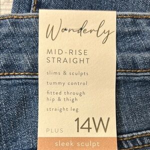 Wonderly Mid-Rise Straight Blue Jeans. NWT 14W