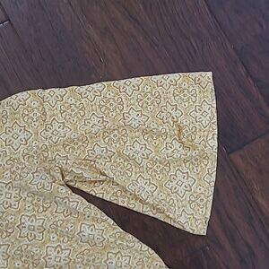 Wonderly Mustard Yellow & Tan Patterned Blouse with Bell Sleeves size XL