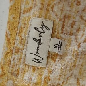 Wonderly Mustard Yellow & Tan Patterned Blouse with Bell Sleeves size XL.