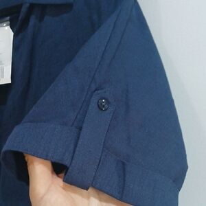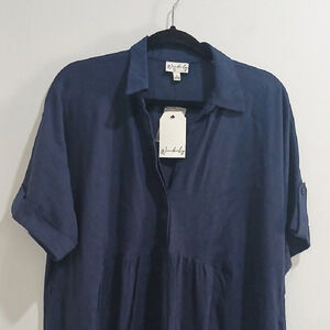 Stylish navy blue shirt dress with short sleeves. Perfect for casual outings. Wonderly Navy Dress Sz L NEW WITH TAGS