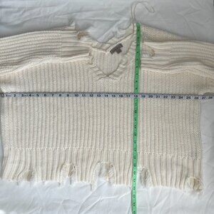 Wonderly Oversize Knit Sweater Distressed V-neck White size M