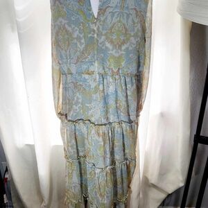 Wonderly Printer Peasant Maxi Dress suze Large New without tag.