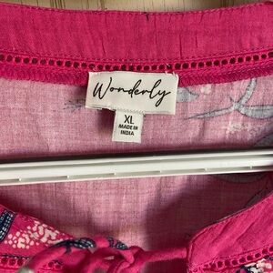 Wonderly Relaxed Gauze Peasant Top in Pink Dotty floral Sz XL