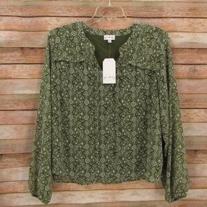 Wonderly Simply Olive Woven V-Neck Blouse XXL