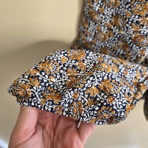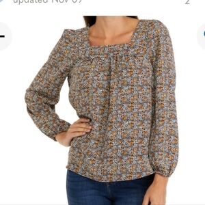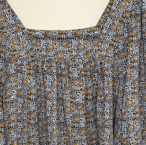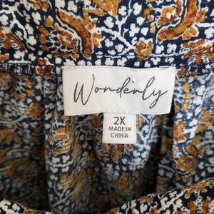 Wonderly | Square Neck Blouse in Dark Navy & Rusty Orange Floral Print Size 2X