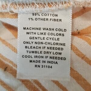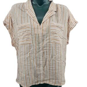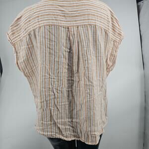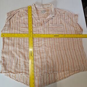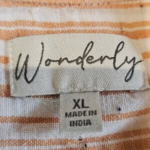 Wonderly Striped Orange White Collared Button Boho Top Cotton Women's XL 3581