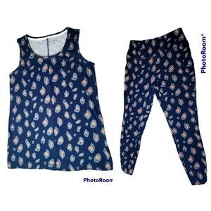Wonderly Studio Athletic Blue Leopard Print Bundle Long Tank Top and Leggings