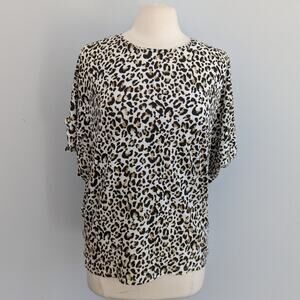Wonderly Studio Petite Cap Sleeve Swing Blouse Top Medium Leopard Print