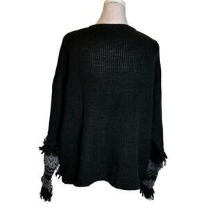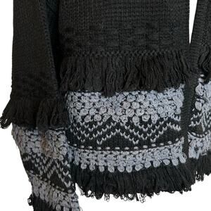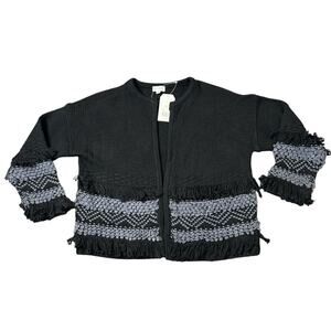 🆕 Wonderly Sweater Cardigan Size S Black Crocheted Loop Fringe Soft Knit NWT