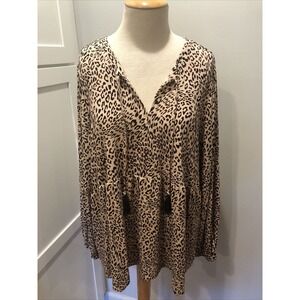 Wonderly Top Womens Size 3X Animal Print Knit Tassled Long Sleeve NWT
