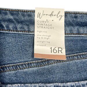Wonderly Womens 16R Curvy Vintage Straight Cropped Jeans High Rise Denim Slim
