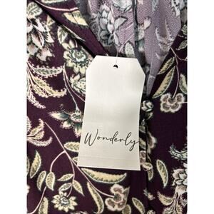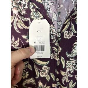 Wonderly Womens Blouse Size XXL Purple Floral Boho Button Front Peasant Stretch