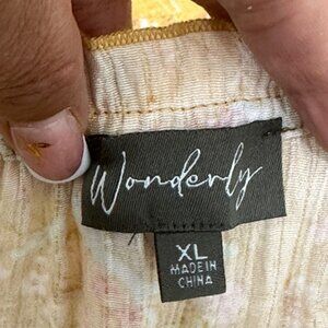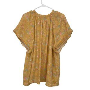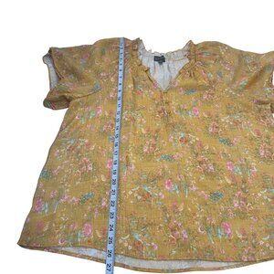 Wonderly Womens Mustard Yellow Boho Floral Blouse Size XL Short Ruffle V Neck