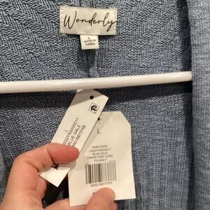 Wonderly Womens Open Cardigan Size Large Long Duster Blue NEW Cotton Beach Prep