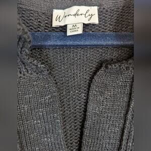Wonderly Women's Oversized Black V-Neck Slub Collared Sweater Medium