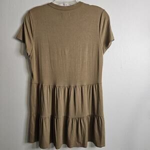 Wonderly Women's S Tiered Tunic Top Brown Button Down Short Sleeve V-neck Flowy