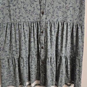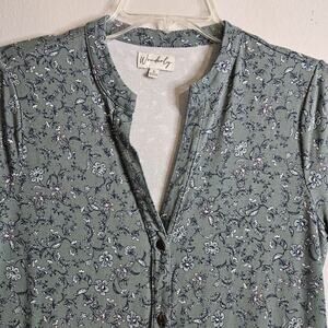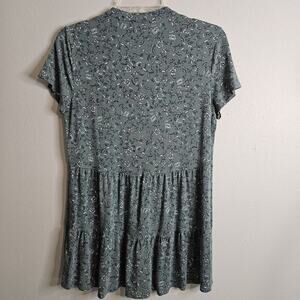 Wonderly Women's S Tiered Tunic Top Green Floral ButtonDown Short Sleeve V-neck