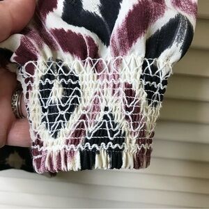 Wonderly Womens Size XS Split Neck Geometric Print Top Tonal Pullover Smocking
