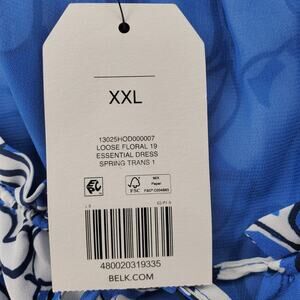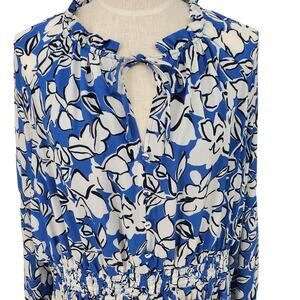 New Wonderly Women's XXL Blue and White Long Sleeve Tiered Maxi Dress. Approximate measurements, length 60in, pit to pit 27in.