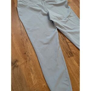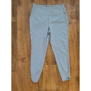gently preloved/ there are very few and minor areas of peeling on the material, the leggings are in overall very good condition! Size large, please refer to measurements in photos. The color is a very subtle light blue shade. These are squat proof!