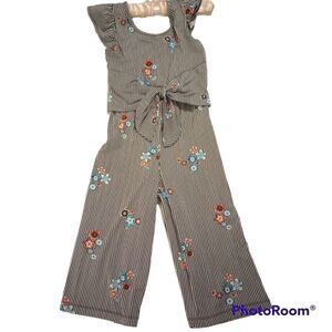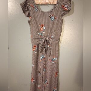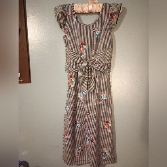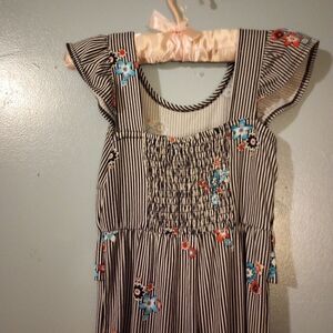 black and white stripes with blue and pink flowers ruffled shoulders gathered elastic back like new no flaws measurements and photos