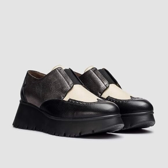 Wonders Salva Black Multi Platform Wingtip Loafers