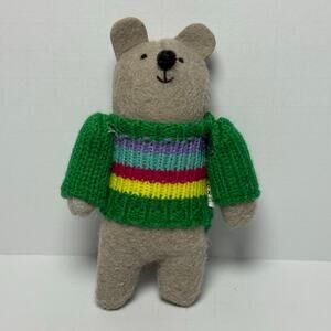 Wondershop Bear Ornament 2024 Felt Animal w/ Green Knit Sweater – New with Tags