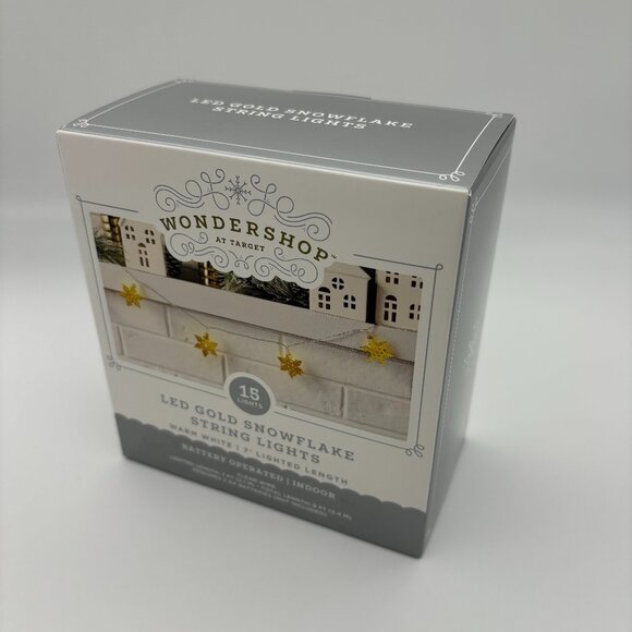 Wondershop LED Gold Snowflake 15 Christmas Metal String Lights, Battery Operated
