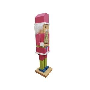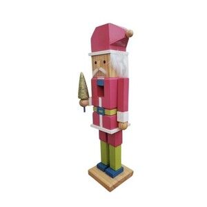 This Wondershop Nutcracker is a 15" wooden decoration in a pink and gold color scheme for a festive holiday look. It features a holiday theme and is designed as a decorative piece for Christmas. The wooden nutcracker is a charming addition to your holiday decor collection.
