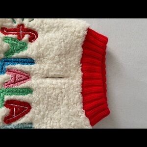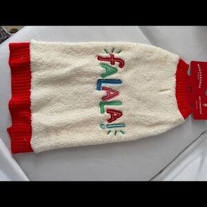 Wondershop Pet Xmas Sweater... FaLaLa graphic on the back...Fits up to 10lbs...Warm & soft...back length 8"...neck girth 10" to 13" stretch...chest girth 16" to 19"...see photos for details...no flaws noted...112821