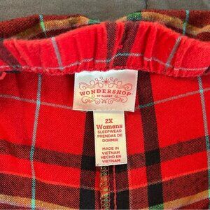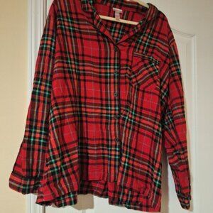 Cozy red plaid pajama set. Button-up top with pocket. Comfortable pants with elastic waist.