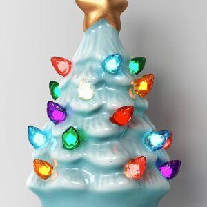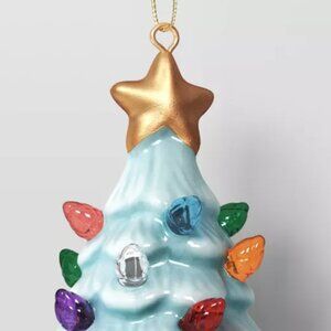 Wondershop Retro Style Lighted BLUE Ceramic Christmas Tree Ornament NWT