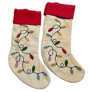 Wondershop by Target pair of Christmas stockings embroidered lights canvas
