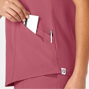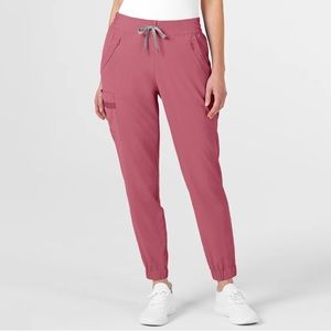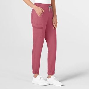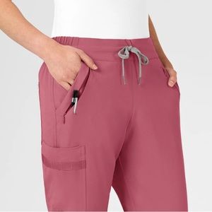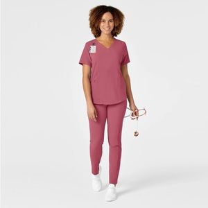 Rosebud RENEW Wonderwink Scrub set. Excellent used condition. No tears, stains, pilling, or wear. Top 3xl/pants jogger 2XL Petite. Zipper pocket, slanted pocket. Adjustable drawstring waistband. High stretch material. Jogger pant length 26.5 inch. Elastic cuff.