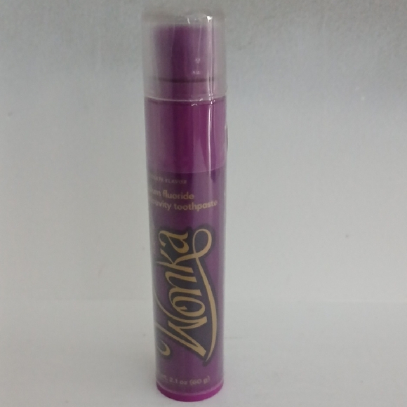 Wonka toothpaste in a vibrant purple color. Unique and fun design.