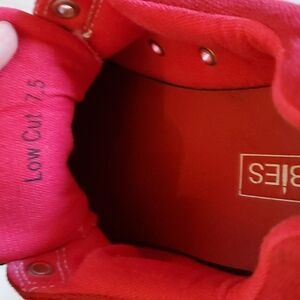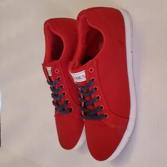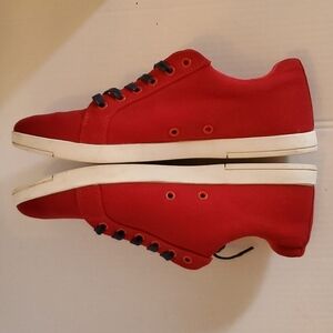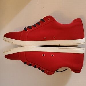 In great pre-owned condition. Lace up durable breathable canvas. Made I'm America. Known for its extreme comfort. Low top. One small stain on side of left show. Please see pictures.