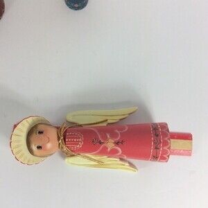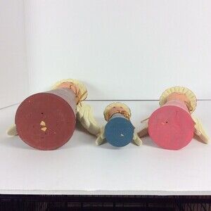 Wood Angel Vintage Hand Painted Folk Art Artist Signed Dated Figurine Set of 3