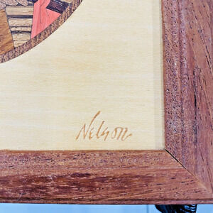 Wood Art Hudson River Inlay Wooden Marquetry Framed Indian Chief Signed Nelson