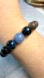 Wood Bead Bracelet with Blue Tiger Eye Black Onyx and Blue Stone