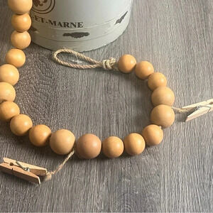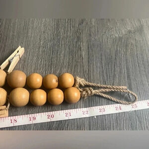 Wood Bead Garland with Clothes Pin Photo/Card Holders, One Size, Natural Color
