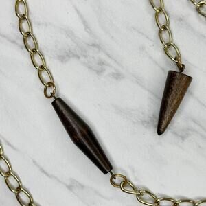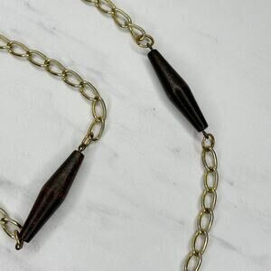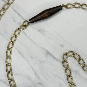 Wood Beaded Gold Tone Metal Chain Link Belt One Size (OS) ✨