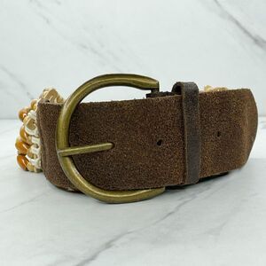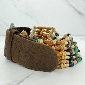 Wood Beaded Leather Boho Belt Small (S) ✨