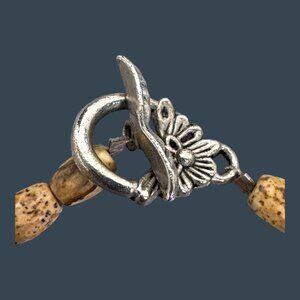 Wood Beaded Necklace Carved Mother of Pearl Hawaiian Lei Shell Flower Pendant 17
