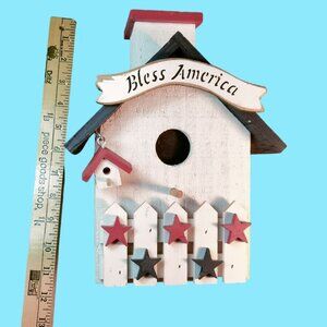 Wood Bird House God Bless America Patriotic Americana Red White Blue USA