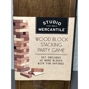 This vintage inspired wood block stacking party game is perfect for family fun! With 40 pieces with sayings, this complete game is sure to entertain players of all ages. The game title is Block Stacking and it's recommended for ages 8 and up.
