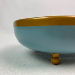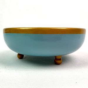 Wood Bowl Hand Painted Glossy Gold French Blue Footed Jewelry Trinket Dish