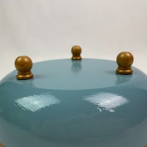 Perfect little trinket dish in the entry hall, bedroom, den, office, living room, etc. For coins, keys, wrapped candy, paper clips. Pretty, shiny antique gold and light French blue.