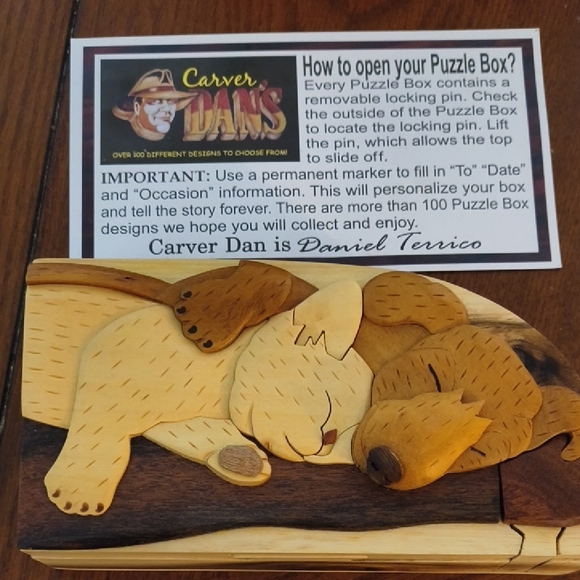 Beautifully carved wooden puzzle box by Daniel Terrico. Approx 6" x 3 1/2".
